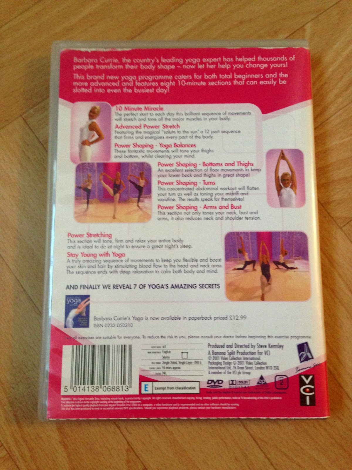 The Yoga DVD in question was Barbara Currie’s 7 Secrets Of Yoga; 10 minute sections that concentrate on different areas of the body. I do more or less, dependant on how my joints are feeling. The more I can maintain the better conditioned my body will be &, in theory, is less likely to become damaged.